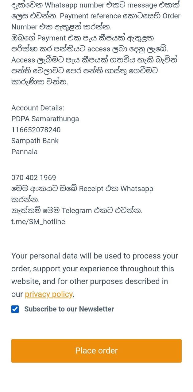 එහි ඇති විස්තර නිවැරදිව පුරවා Order එක Complete කරන්න. Place Order Button එක Click කරන්න.